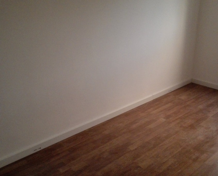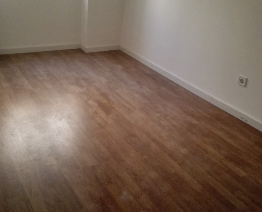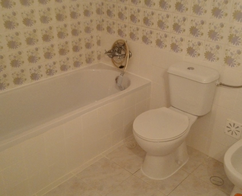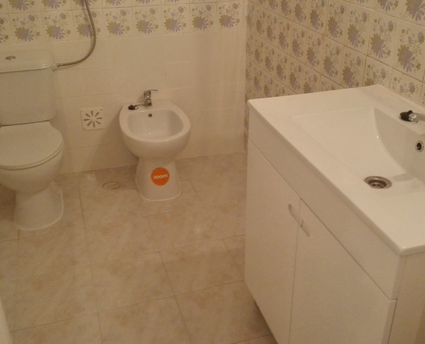 Pintura de paredes e tetos, aplicação de pavimento flutuante, pintura de portas, substituição de todas as louças sanitárias e recuperação do revestimento de paredes.